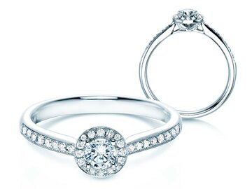 Moderno ed esclusivo: l'anello halo Flower con la pietra principale a scelta tra 0,25, 0,35 o 0,45 ct.