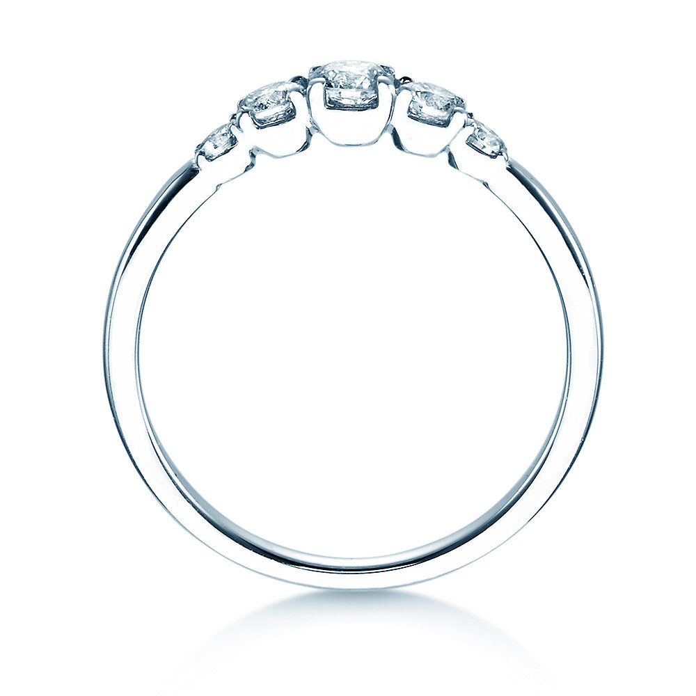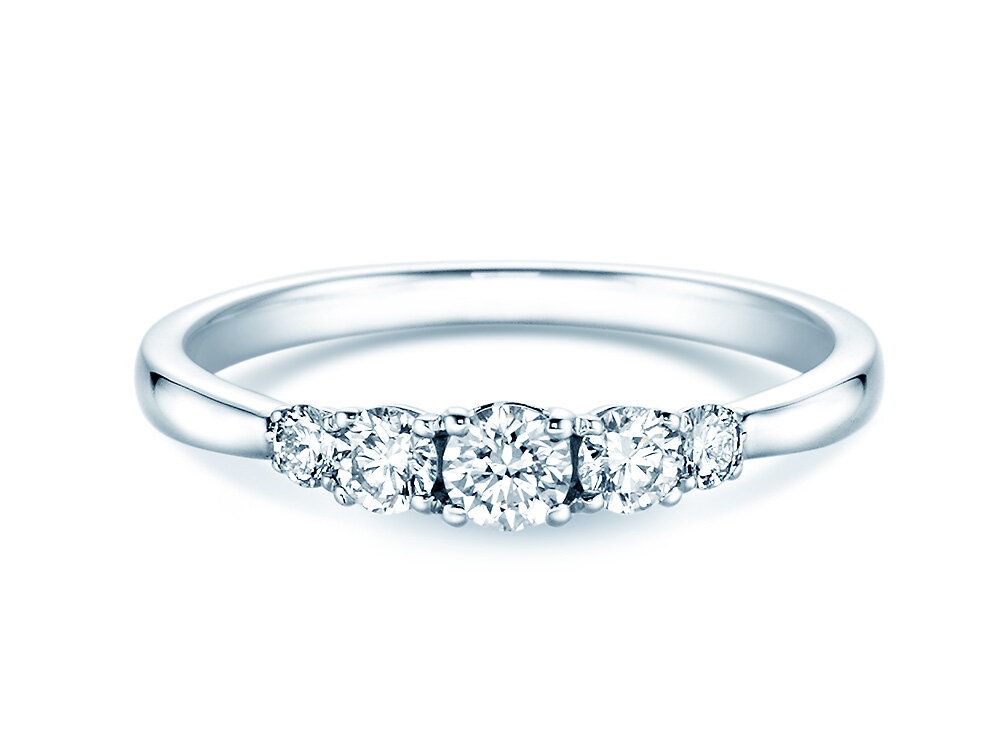Un anello e una promessa. La tenera fascia del 5 Diamonds è incastonata con cinque diamanti sfavillanti. L'ordine delle pietre preziose fa apparire l'anello armonico e equilibrato. Una vera e propria opera d'arte. Ideale per portatrici che amano l'eleganza di classe e il design senza tempo. Il nostro consiglio: il 5 Diamonds d'oro bianco o di paltino.
