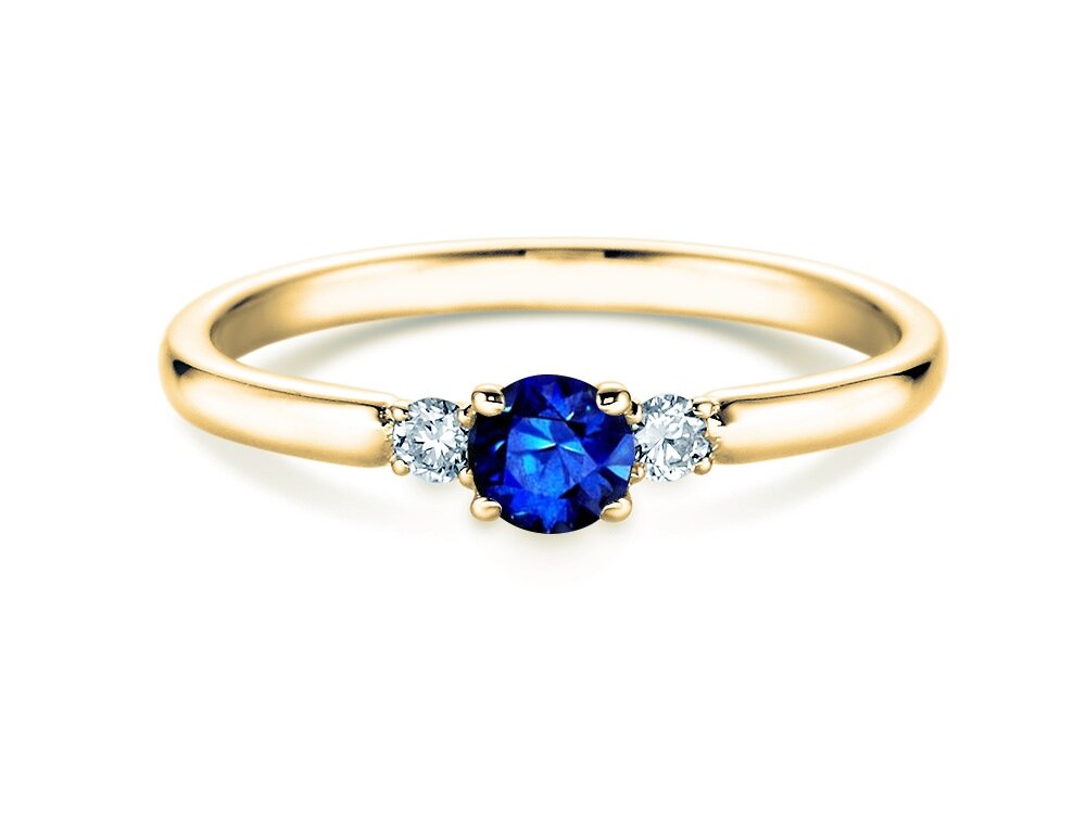 9K oro giallo con zaffiro 0,23ct e diamanti 0,07ct