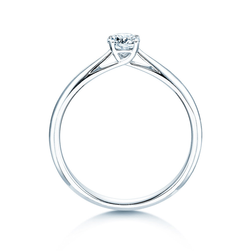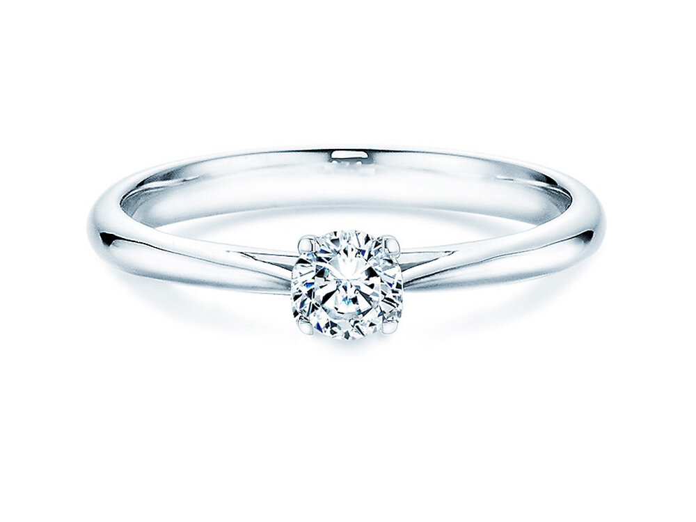 L'anello solitario Delight d'oro bianco o Delight di platino con un diamante da 0,15 ct.