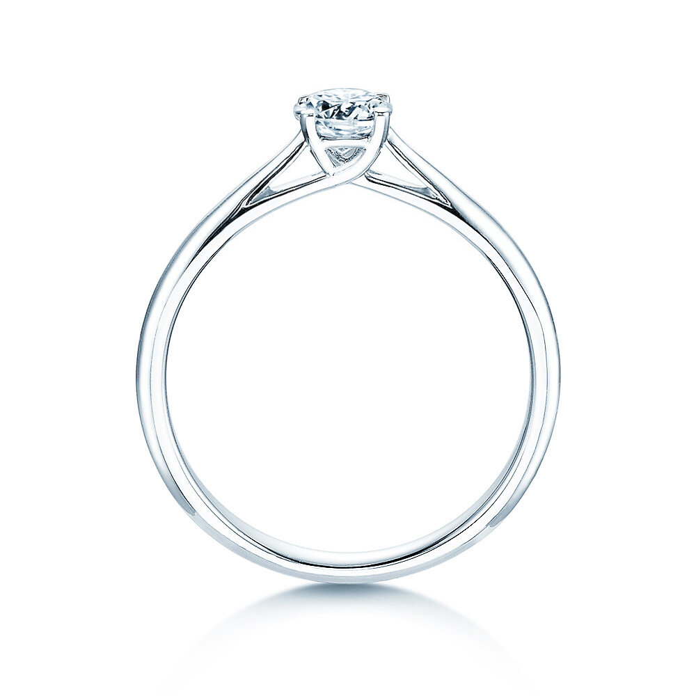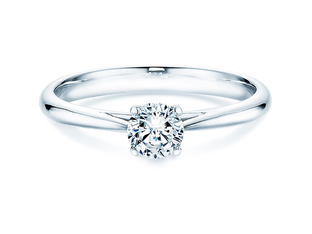 L'anello solitario Delight d'oro bianco o Delight di platino con un diamante da 0,15 ct.