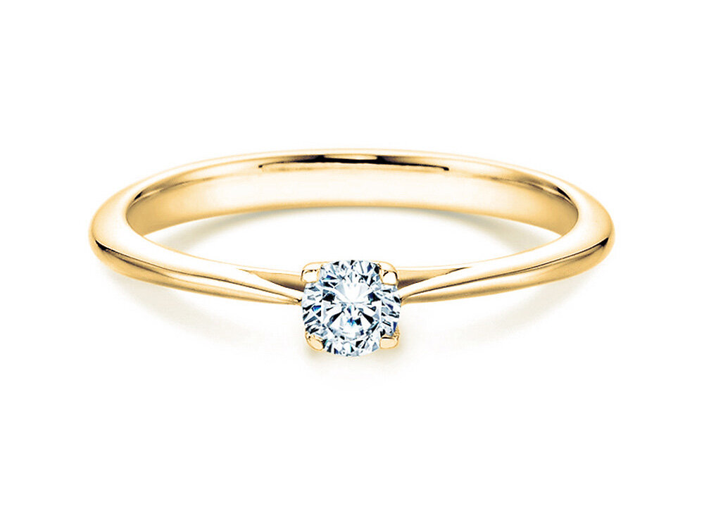 La montatura dell'anello solitario Delight sostiene elegantemente il diamante brillante sulla semplice fascia dell'anello. Il diamante in questo modo può dispiegare la sua massima luminosità. L'anello solitario Delight: classico nella forma, di classe e alla moda all'apparenza.
