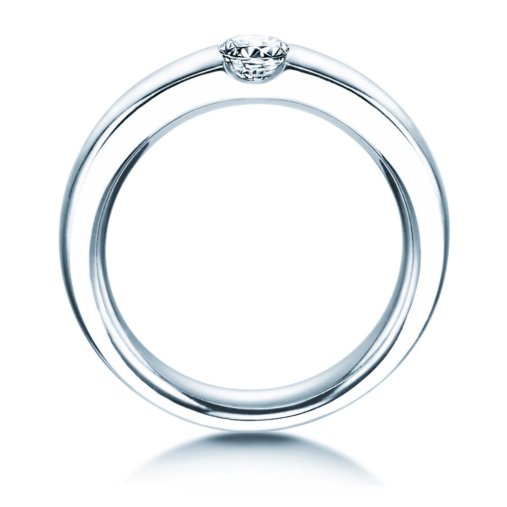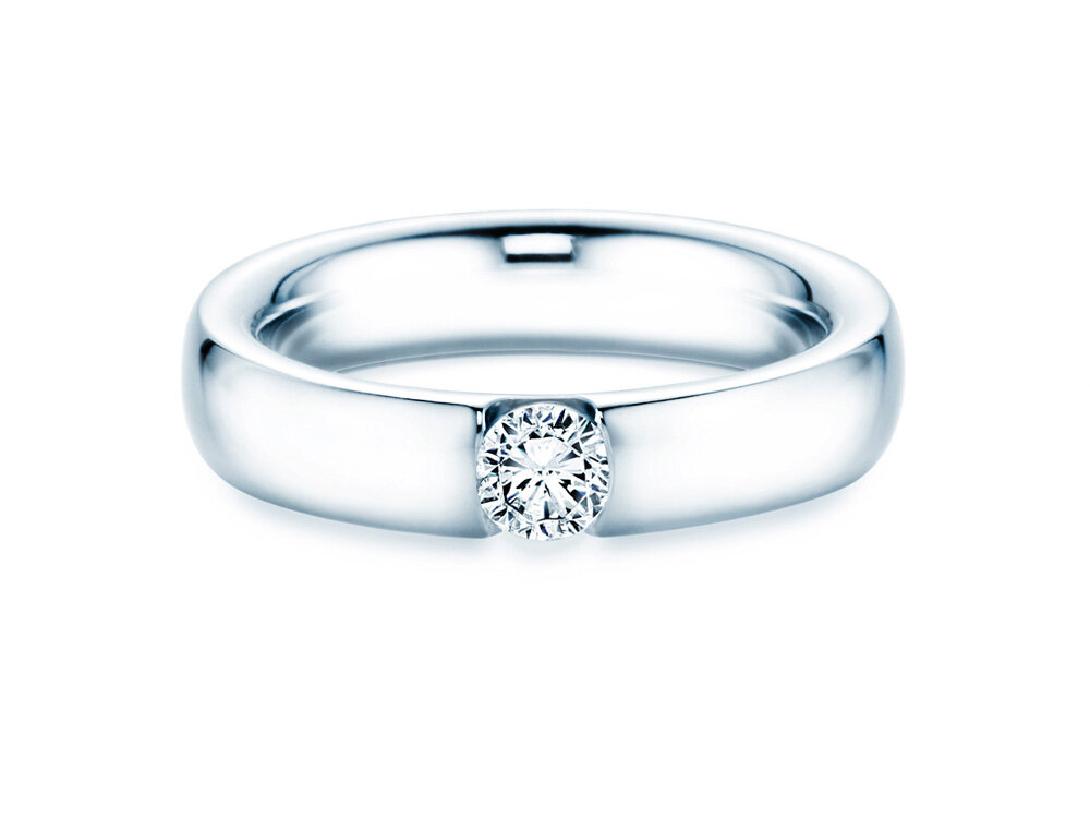 La moderna tipologia della montatura dell'anello tensione Destiny ha due vantaggi particolari: 1. Il diamante è ben mantenuto e 2. attraverso i lati arriva tanta luce. In questo modo il diamante può dispiegare la sua luminosità particolare. Il tracciato chiaro ed equilibrato della fascia dell'anello perfeziona il design elegantemente.