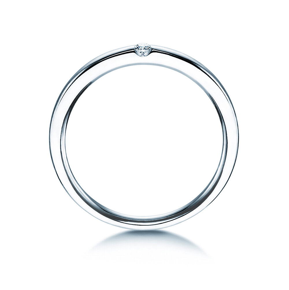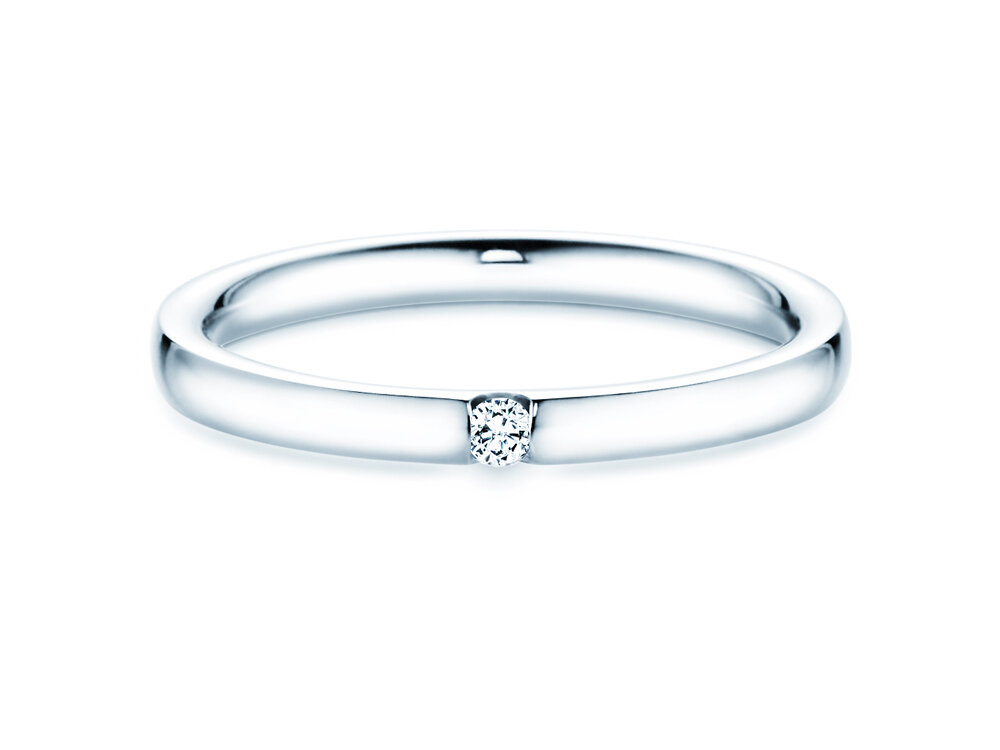 La moderna tipologia della montatura dell'anello tensione Destiny ha due vantaggi particolari: 1. Il diamante è ben mantenuto e 2. attraverso i lati arriva tanta luce. In questo modo il diamante può dispiegare la sua luminosità particolare. Il tracciato chiaro ed equilibrato della fascia dell'anello perfeziona il design elegantemente.