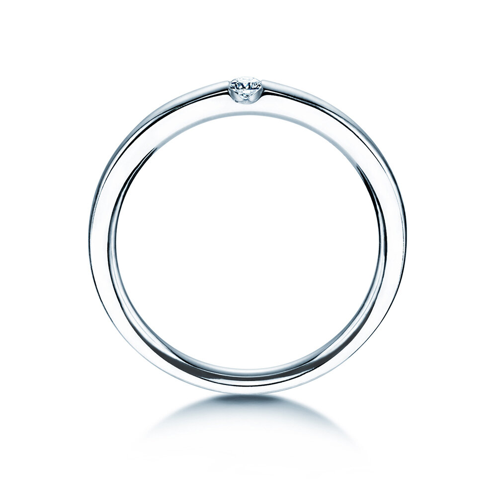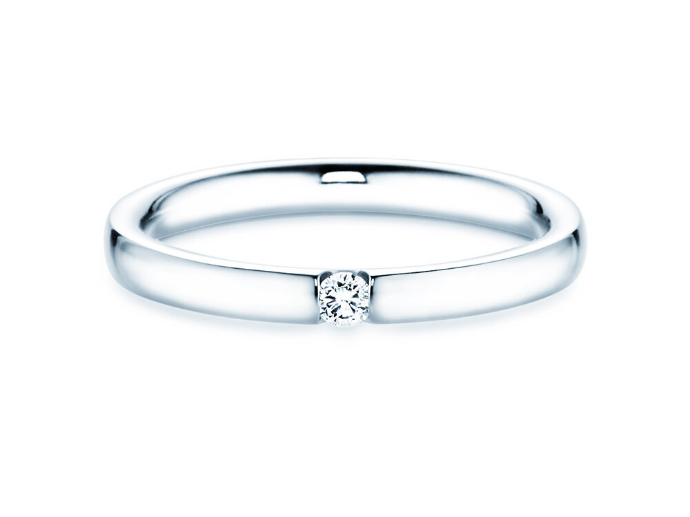 La moderna tipologia della montatura dell'anello tensione Destiny ha due vantaggi particolari: 1. Il diamante è ben mantenuto e 2. attraverso i lati arriva tanta luce. In questo modo il diamante può dispiegare la sua luminosità particolare. Il tracciato chiaro ed equilibrato della fascia dell'anello perfeziona il design elegantemente.