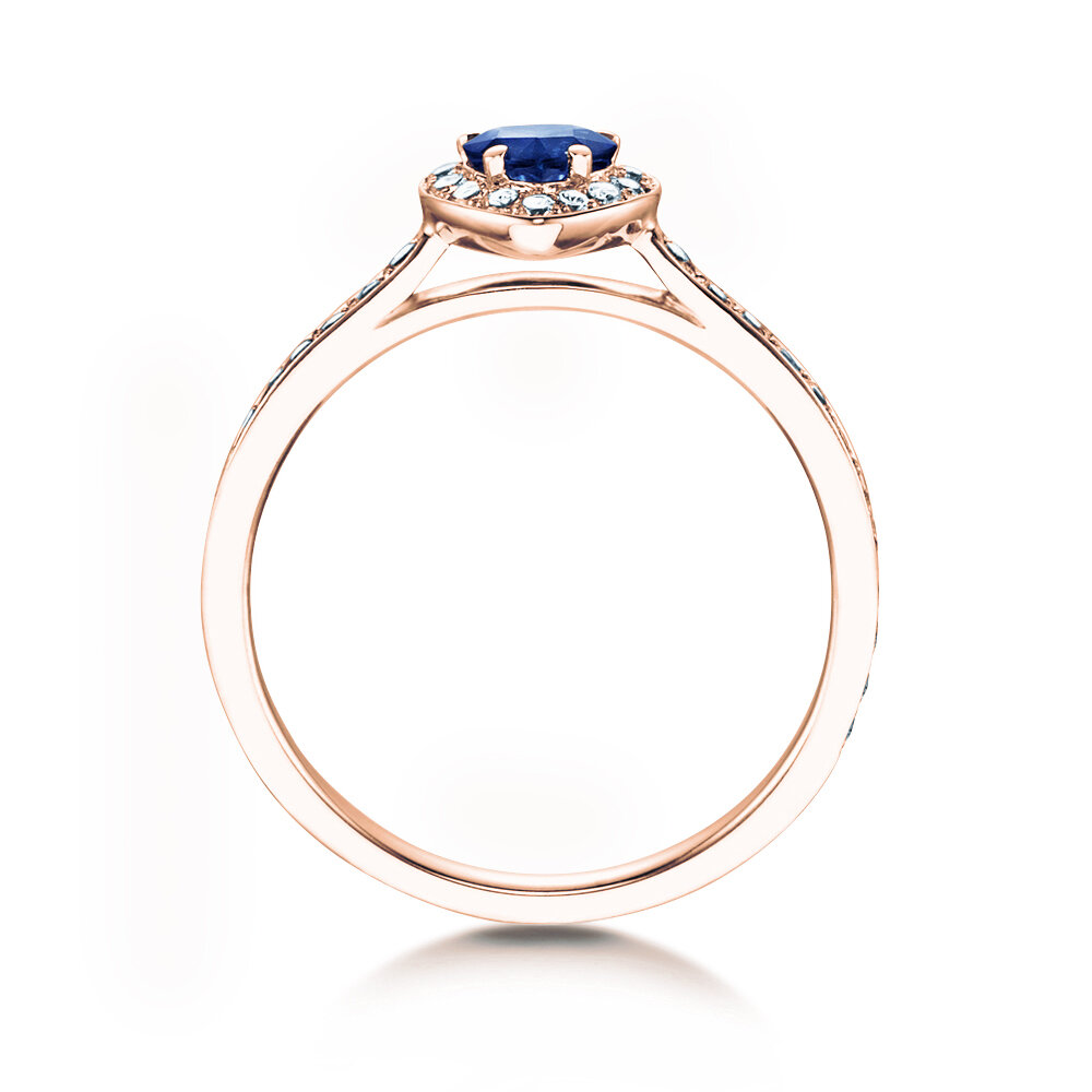 Il contrasto mozzafiato dello zaffiro blu scuro e della fascia di diamanti brillanti è un highlight della nostra collezione.