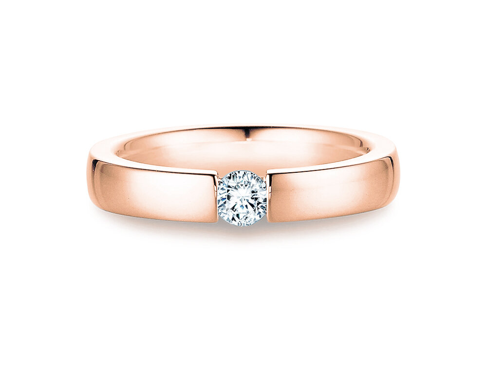 L'anello tensione Infinity, moderno e semplice, si adatta perfettamente come anello di fidanzamento. Il diamante incastonato nella fascia fa apparire l'anello equilibrato e armonico; il diamante è ben protetto contro le sollecitazioni meccaniche. Il metallo scelto molto spesso è l'oro bianco.