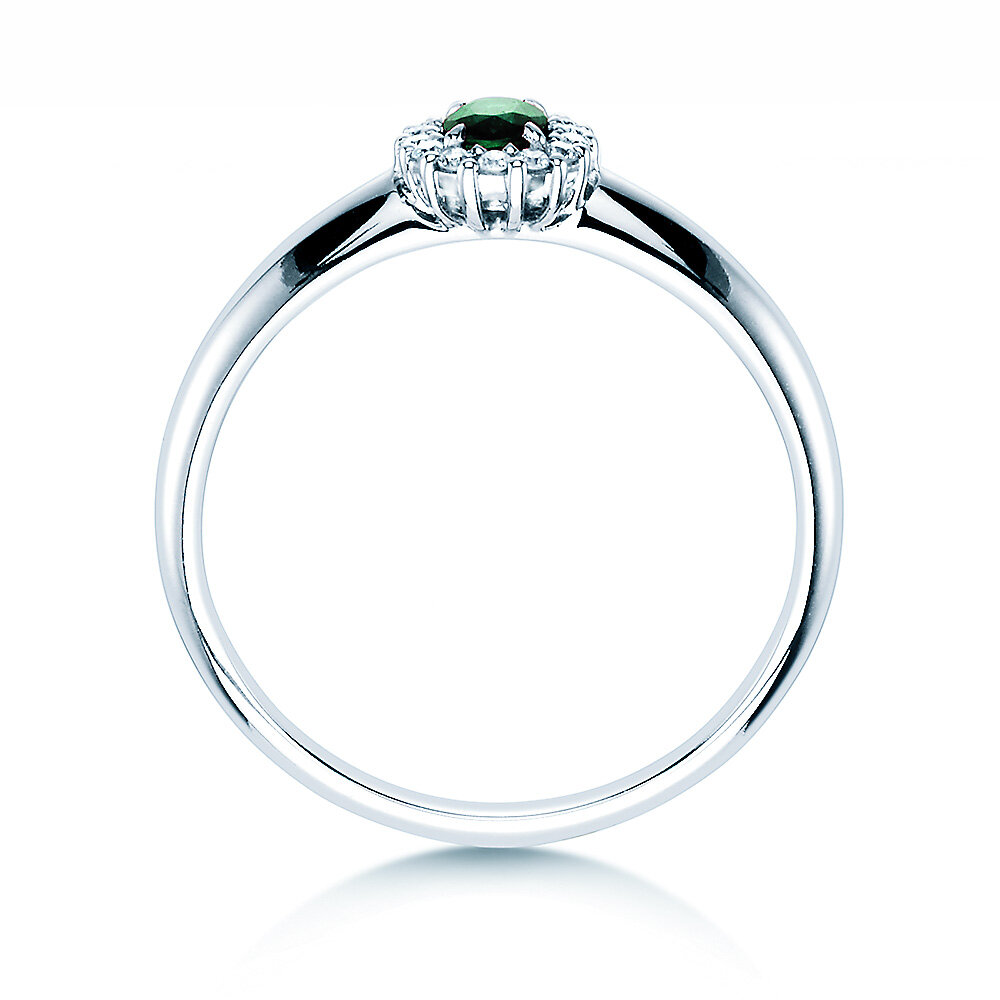 Riceve il nostro anello di fidanzamento Jolie con zaffiro, smeraldo o rubino ed una corona di diamanti.