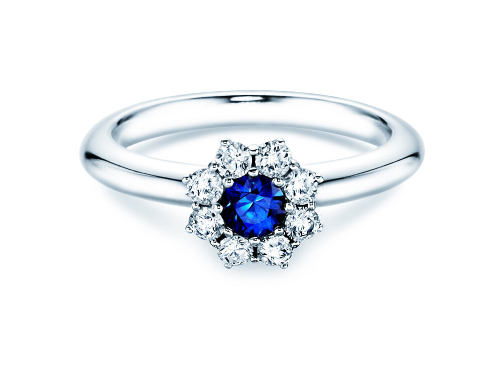 18K oro bianco con zaffiro 0,33ct e diamanti 0,40ct