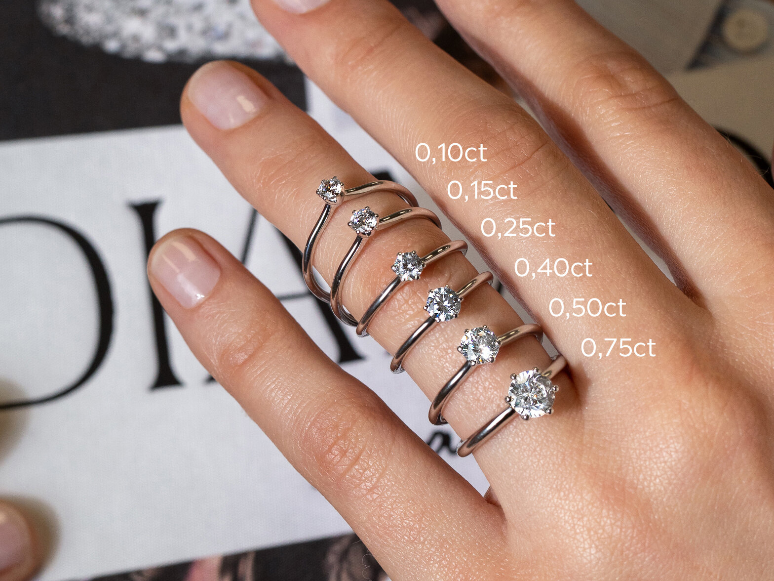 Altre informazioni sui diamanti, sugli anelli, sulla misura e sull'incisione.