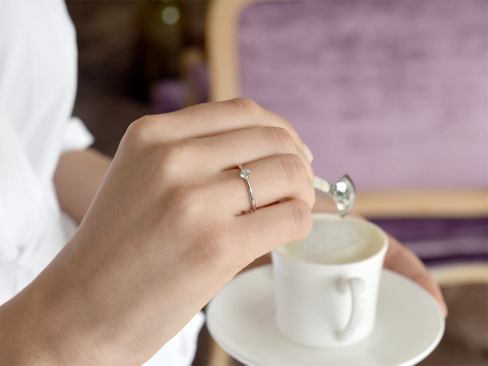 La classica fascia dell'anello Spirit si riduce, il diamante è incastonato ad un'altezza che permette riflessi scintillanti ed una maggior efficienza luminosa. La parte interna, leggermente incurvata, rende l'anello comodo. Lo Spirit è un anello di fidanzamento equilibrato, elegante e un'ode all'artigianato.