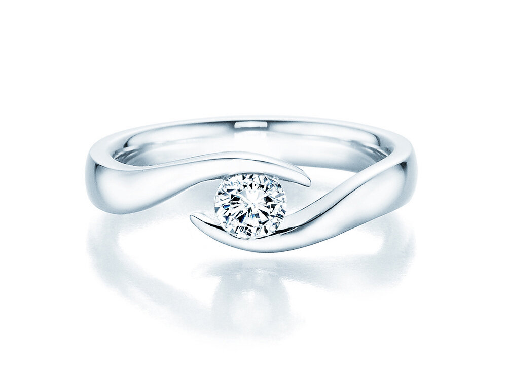 Eleganza, raffinatezza ed un design unico in un anello di fidanzamento: l'anello di fidanzamento Twist racchiude il diamante come un tesoro prezioso.
