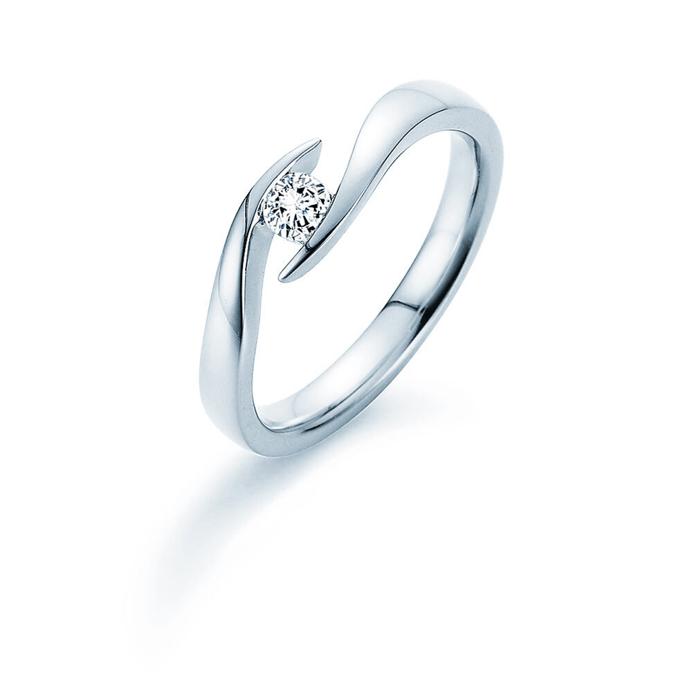 Eleganza, raffinatezza ed un design unico in un anello di fidanzamento: l'anello di fidanzamento Twist racchiude il diamante come un tesoro prezioso.