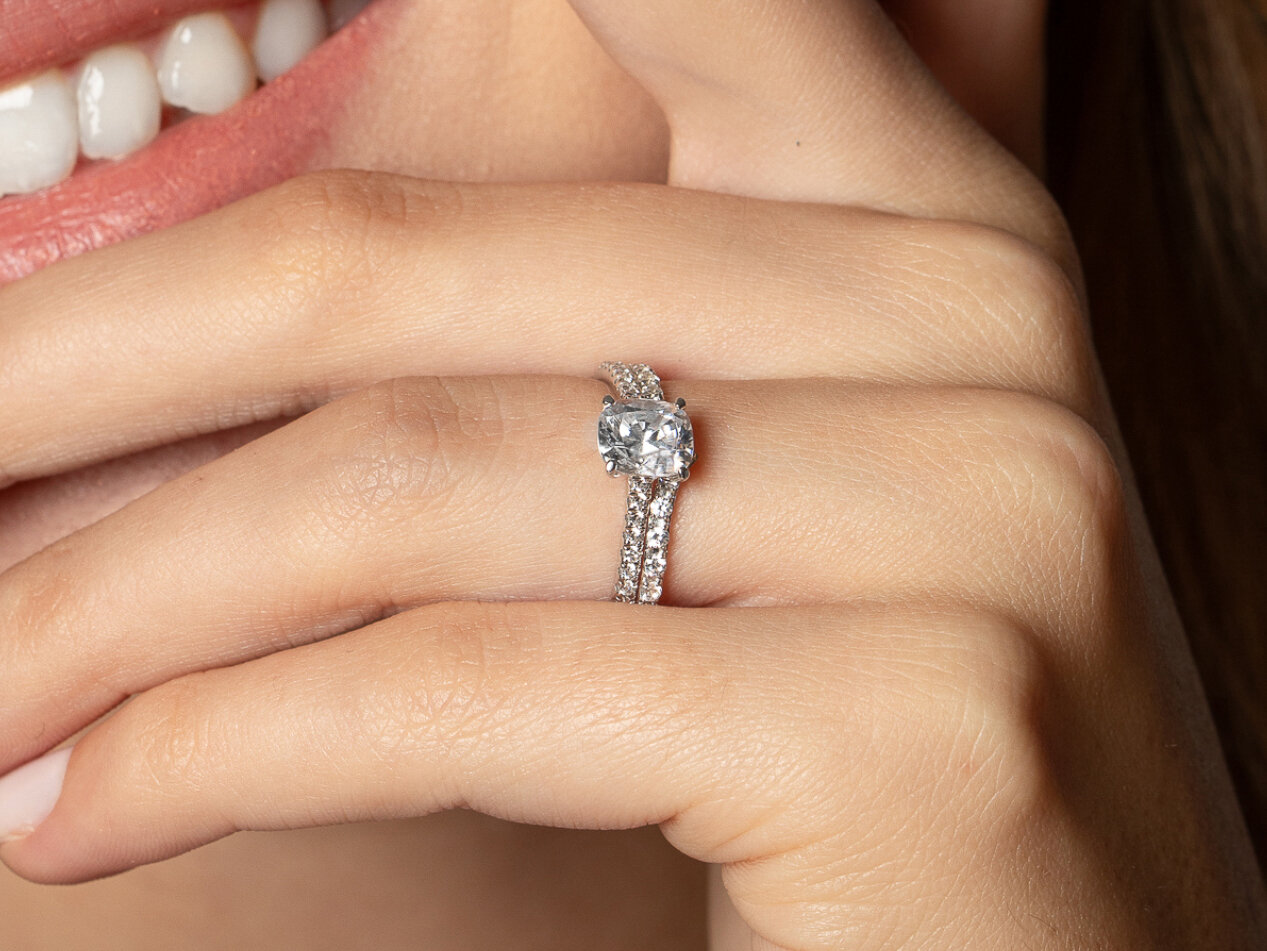 Anello di fidanzamento Cushion Pavé