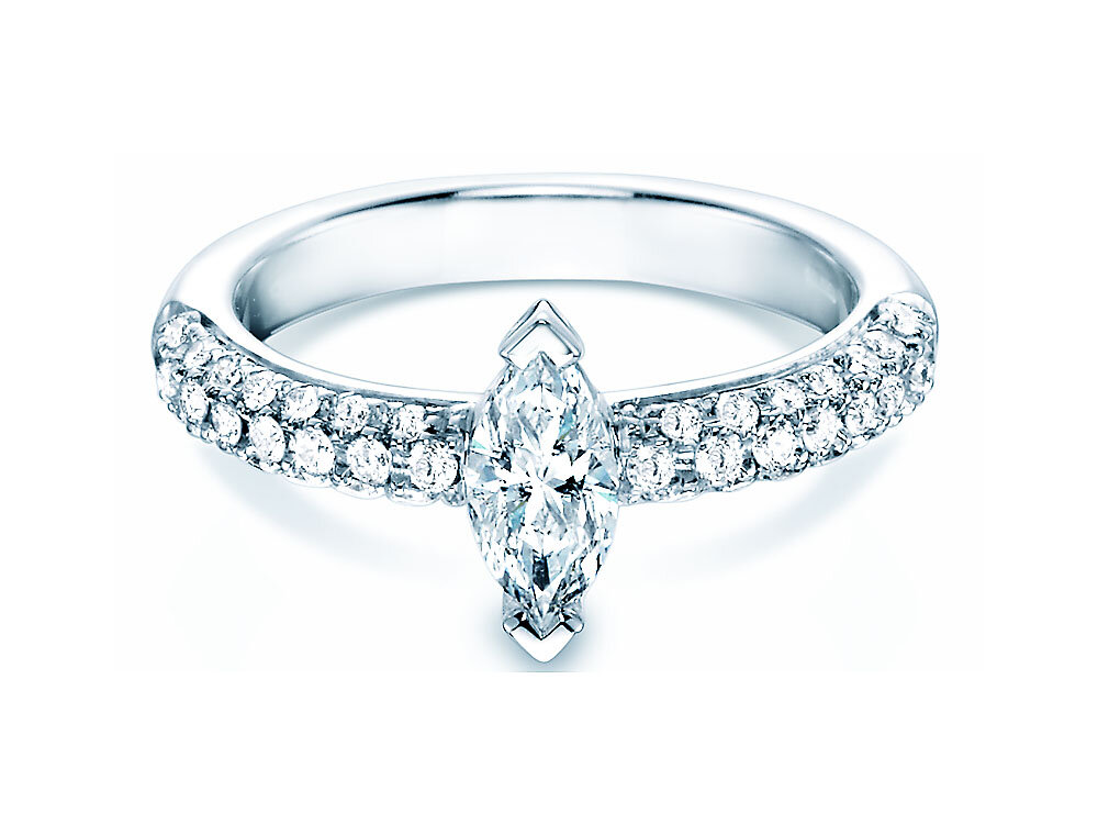 Oro 18 carati con diamante di taglio marquise. L'origine del taglio marquise risale ai tempi di Luigi XIV. Il taglio marquise brilla in un modo particolarmente espressivo. Un anello creato per una donna incredibilmente bella ed inconfondibile.
