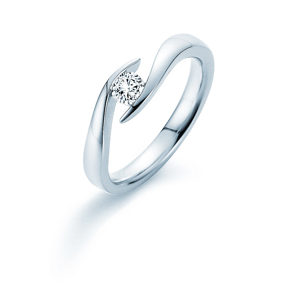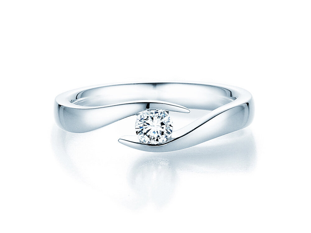 Eleganza, raffinatezza ed un design unico in un anello di fidanzamento: l'anello di fidanzamento Twist racchiude il diamante come un tesoro prezioso.